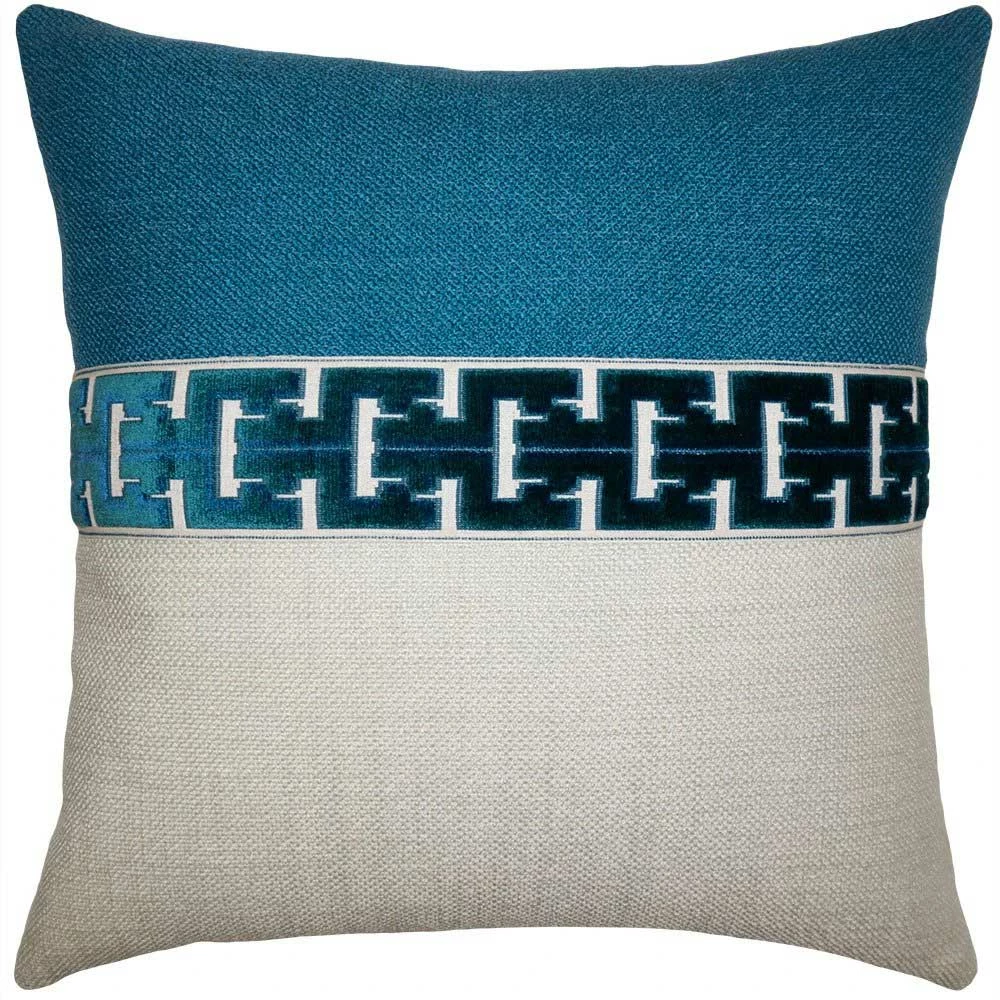 The Jager Aqua Throw Pillow in blue and off-white is accentuated with the complementing raised geometric pattern for visual and tactile appeal. Mix and match with other Jager pillows to add color and dimension to your living space. Made to order in Texas.