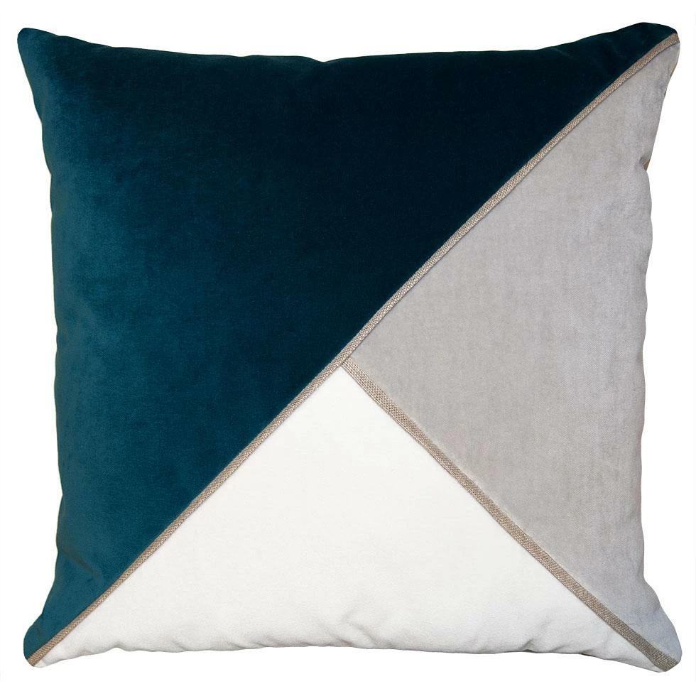 The Harlow Cyan Throw Pillow is a tri-color triangular pattern with an accenting trim. A striking addition of geometric dimension to your decor. Mix and match with other Essential Collection pillows to add color and dimension to your living space. Available in 22″x22″ and 24″x24″ squares. Made to order in Texas.