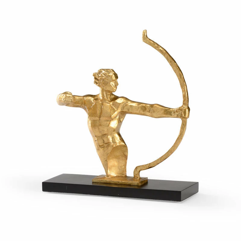 The Archer table accent. A cast composite figure in gold leaf on black mounting.