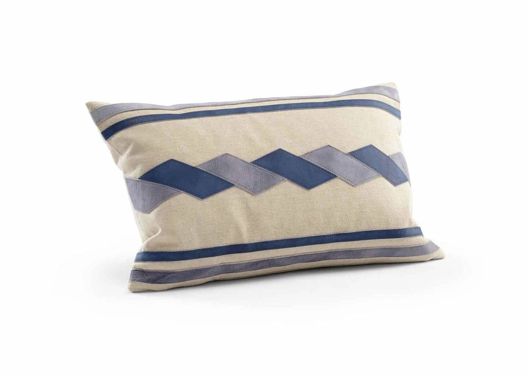 Add some Southwest flavor to your family living area with the Santa Clara pillow. Accented in blue and grey suede, this natural linen pillow is as comfortable in a Man Cave as it is a mountain cabin retreat. Use it to complement the rich browns of a leather sofa or throw it along your headboard for color and texture.