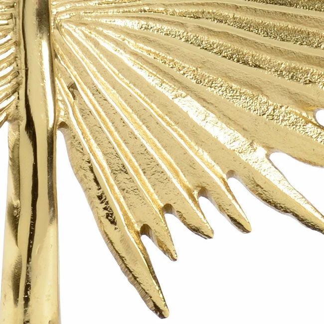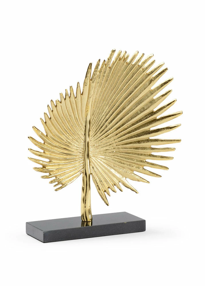 A cast aluminum Fan Palm with gold finish on a natural black marble mounting.