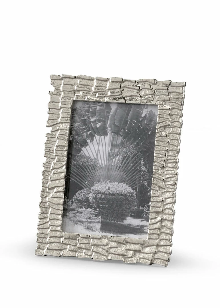 Shingles Photo Frame-Medium. Cast aluminum frame with a silver finish. Fits 5×7 photos.