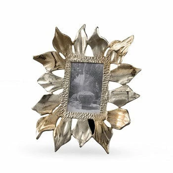 Sunflower Photo Frame-Large. A cast aluminum frame with ambered silver finish. Fits 5×7 photo.