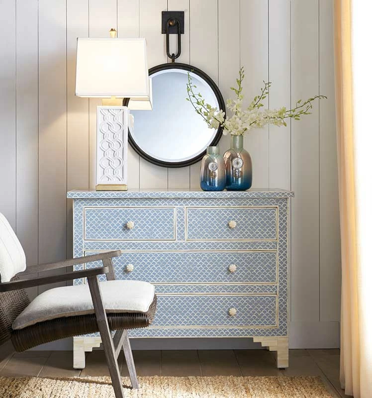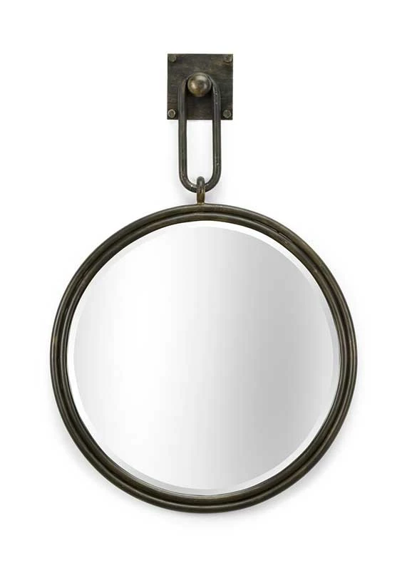 Open up your space while adding style with the Grenada Mirror. This versatile mirror features an antiqued bronze finish on a classic circular shaped iron frame. The modern contemporary design is suspended from a square wall hook for added dimension. Worthy of its own space, mount this beveled mirror on a wall over a sofa, credenza or cabinet in your home or office to reflect your decorative aesthetic.